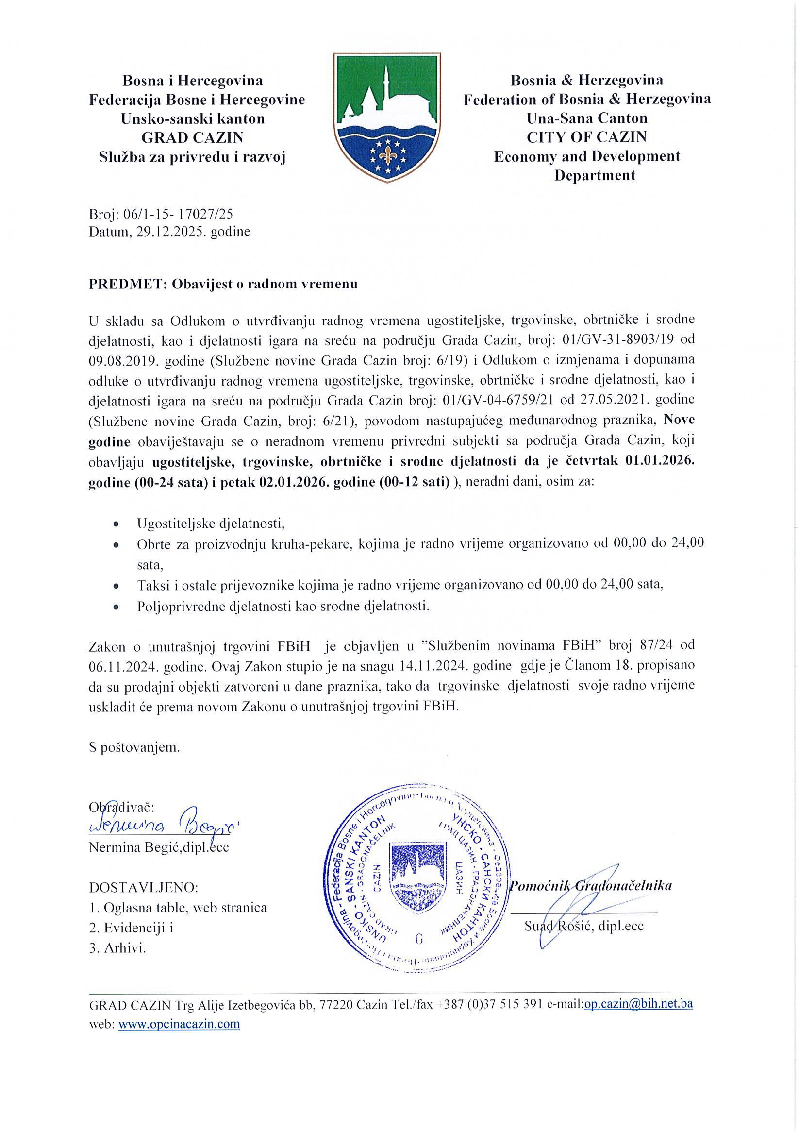 Obavijest o radnom vremenu / Tue, 12/30/2025 - 12:32 Submitted by huseinp on December 30, 2025 Image Tags grad cazin Log in or register to post comments